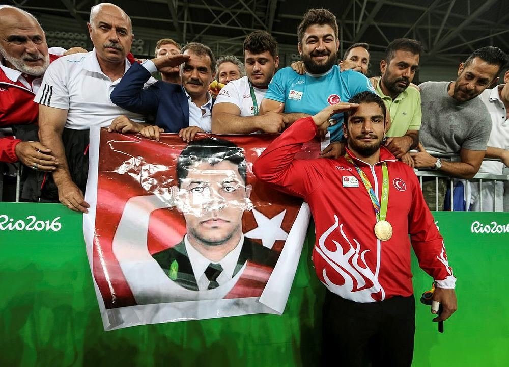 Olimpiyat Şampiyonu Taha Akgül Türkiye'nin altın madalyasını, 15 Temmuz gecesi Türkiye'yi işgalden kurtaran kahraman astsubayımız Şehit Ömer Halisdemir'e adadı. Karşılaşma sonrası Şehit Ömer Halisdemir'in fotoğrafının bulunduğu bölgeye doğru koşan Taha, kahraman şehidimizi asker selamıyla selamladı. Bu arada, kazanılan altın madalya sonrası bayrağımızın göndere çekilip İstiklal marşımızın okunduğu sırada Gençlik ve Spor Bakanı Akif Çağatay Kılıç'ın göz yaşlarını tutamadığı gözlendi.