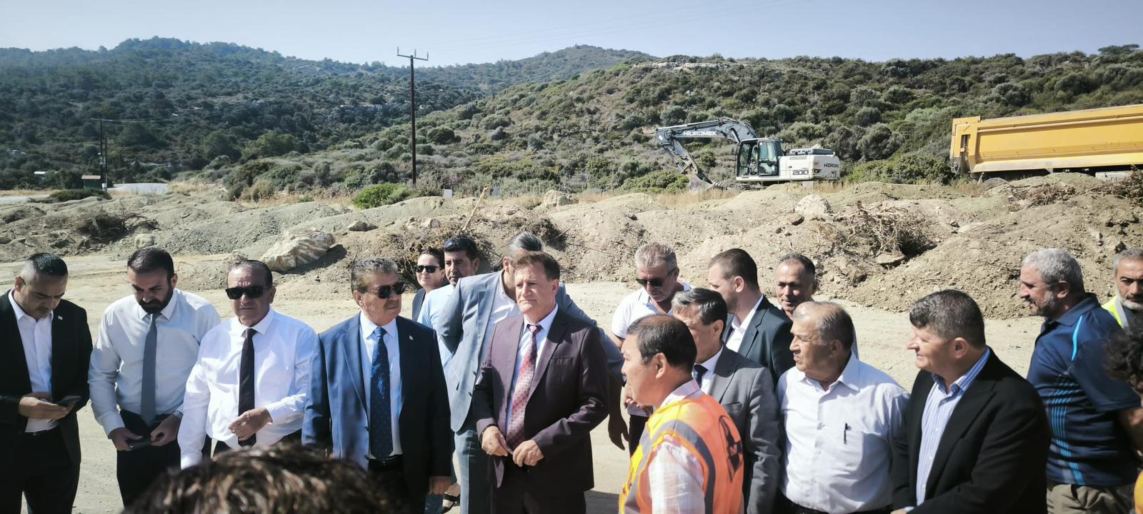 Bayındırlık ve Ulaştırma Bakanı Erhan Arıklı, Başbakan Ünal Üstel ve Başbakan Yardımcısı, Turizm, Kültür, Gençlik ve Çevre Bakanı Fikri Ataoğlu ile birlikte Kayalar ayrımı-Sadrazamköy yolu yenileme çalışmalarını incelemelerde bulundu