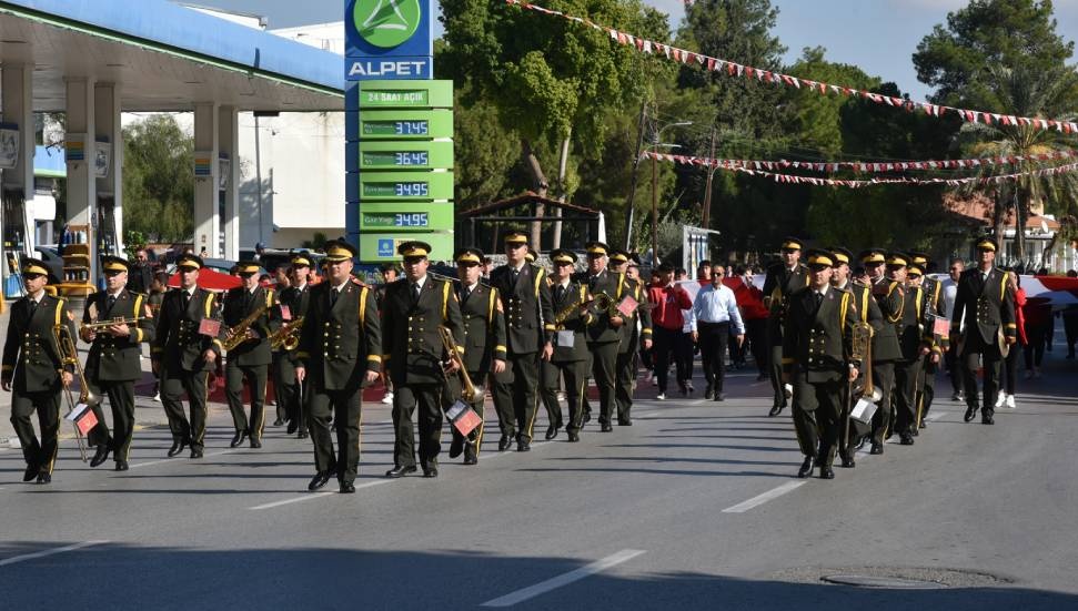 Bando eşliğindeki kortejde, KKTC ve TC bayraklarının yanı sıra Ulu Önder Mustafa Kemal Atatürk, Kurucu Cumhurbaşkanı Rauf Raif Denktaş ve Kıbrıs Türk halkının varoluş ve özgürlük mücadelesi lideri Dr. Fazıl Küçük’ün yer aldığı bayraklar da taşındı.