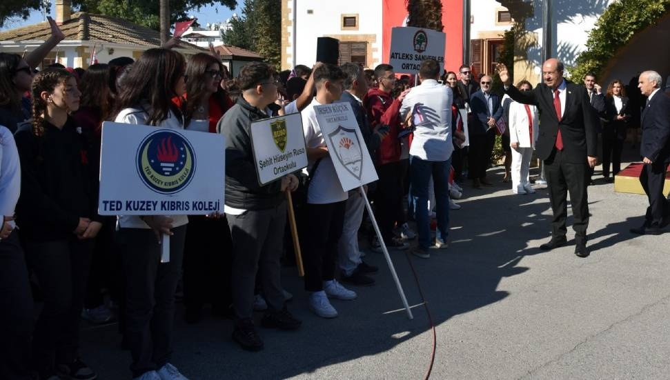 Cumhurbaşkanlığı’na gelen öğrencileri, Cumhurbaşkanı Ersin Tatar' selamladı. Buradaki programda Cumhurbaşkanı Tatar ve Milli Eğitim Bakanı Çavuşoğlu konuşma yaparken, 9 Eylül İlkokulu öğrencisi Abdullah Arin Gül, “Kuzey Kıbrıs Türk Cumhuriyeti Bayrağı”, Türk Maarif Koleji öğrencisi Yusuf Damlar “15 Kasım” ve Osman Örek Meslek Lisesi öğrencisi Abdullah Karaduman “Özgürlük Türküsü” adlı şiirleri okudu.