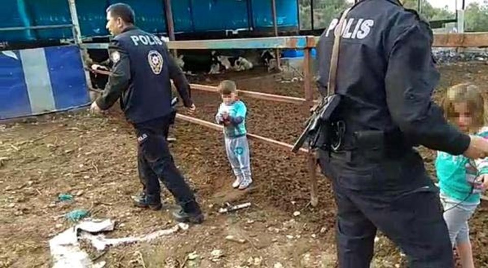 İhbar üzerine bölgeye gelen polis, 3 yaşındaki Ahmet E. ve ablası 5 yaşındaki Ragad E.’yi iple bağlandıkları çitten kurtardı.