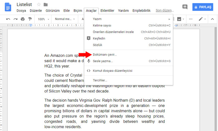 4. Google Dokümanlar menüsünü didik didik etmeden istediğiniz fonksiyonu bulmak