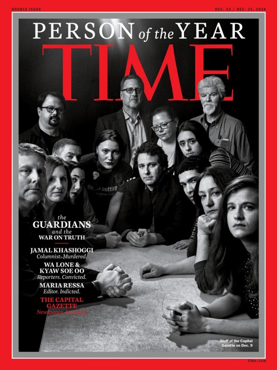 Amerikan Time dergisinin "yılın kişisi" unvanına layık gördüğü isimler Cemal Kaşıkçı, Maria Ressa, Wa Lone ve Kyaw Soe Oo ile The Capital Gazette gazetesi oldu.