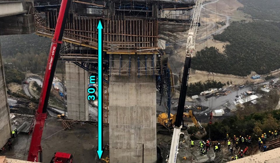 Saat 10.55'teki çökme, viyadük başlık ayağı montajının yapıldığı sırada gerçekleşti.