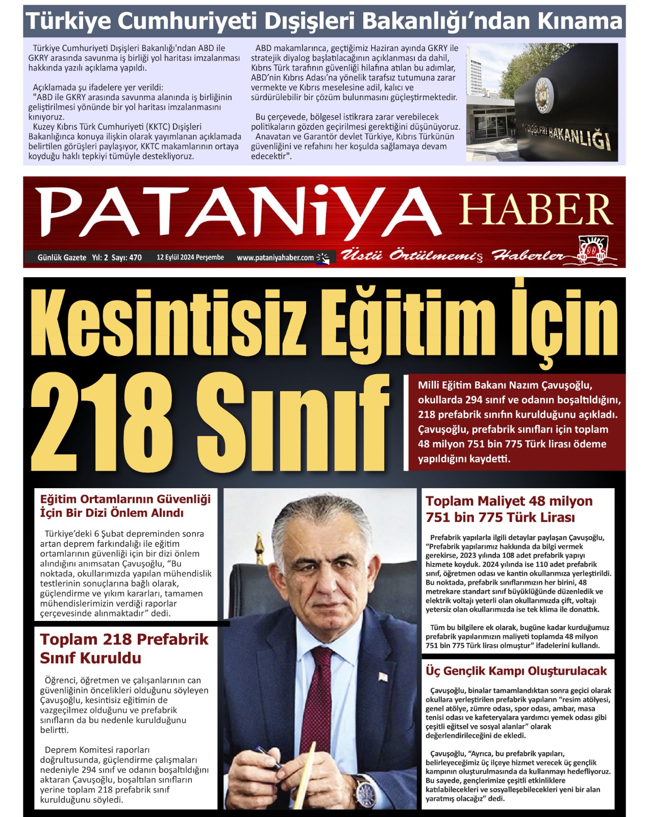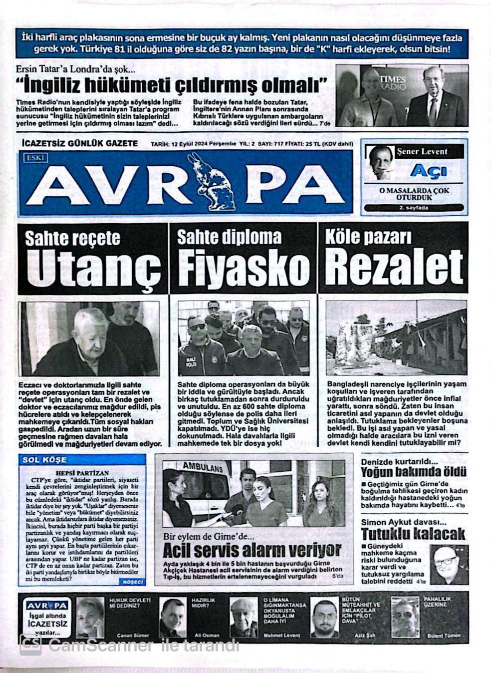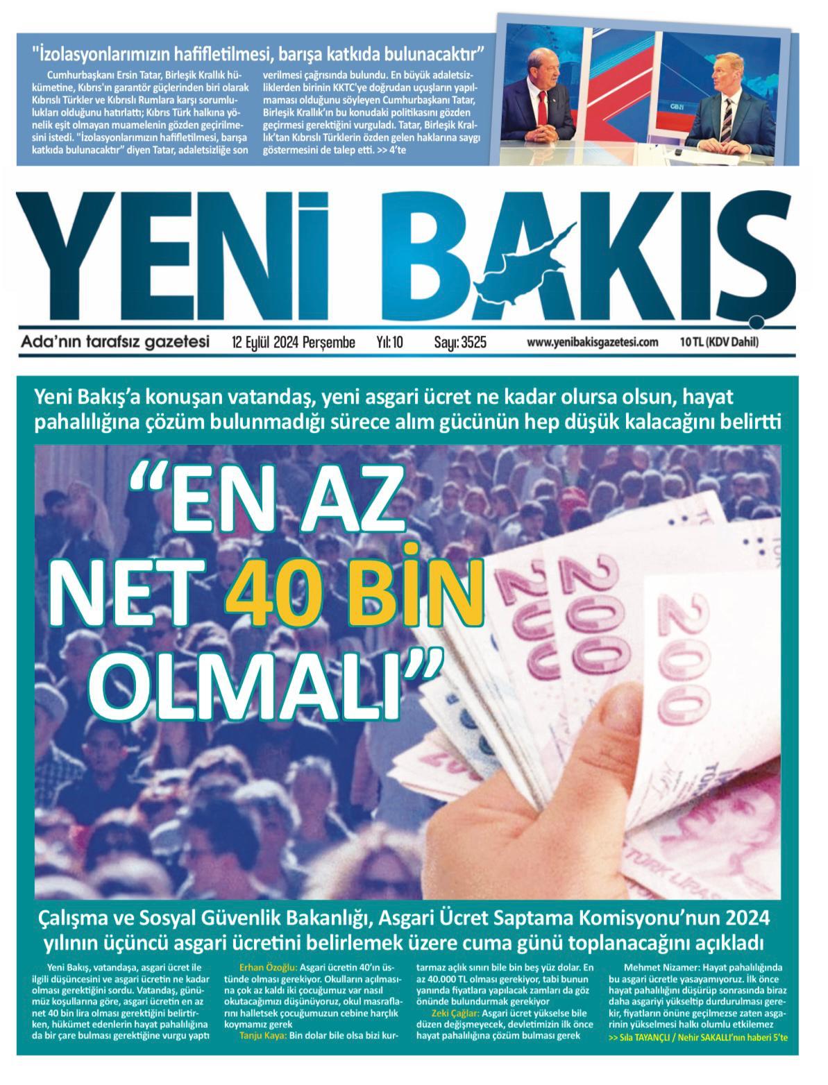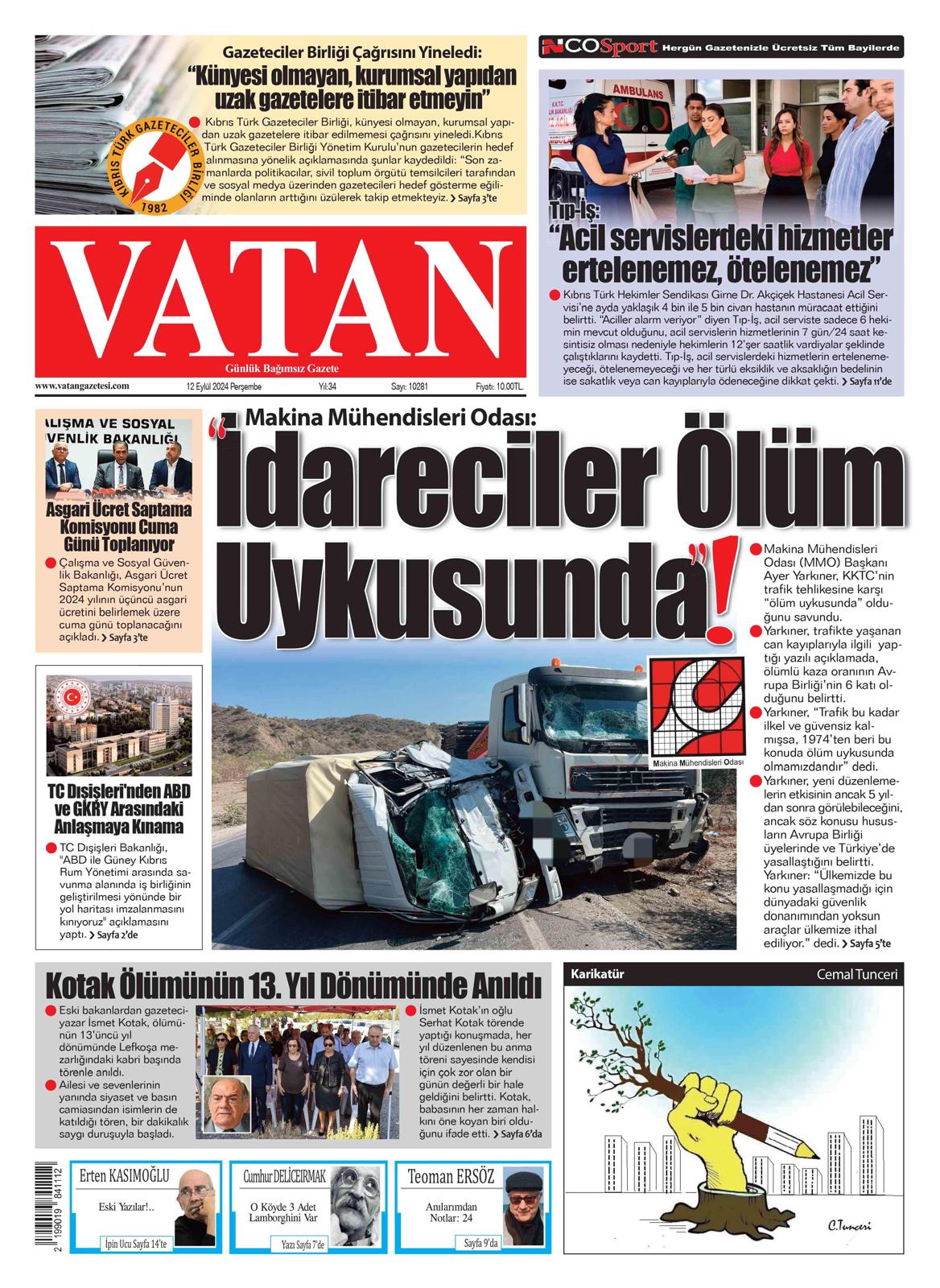 12 Eylül 2024 Gazete Manşetleri