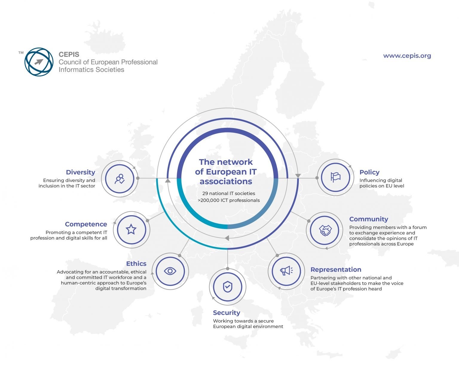 1989’dan bu yana 32 ülkeden 200 binden fazla bilişim profesyonelini bünyesinde toplayan CEPIS, Avrupa bilişim politikalarının şekillendiği kritik bir platform olarak biliniyor. TBD’nin 2000 yılından beri sürdürdüğü aktif üyelik, Türkiye’nin bu önemli karar mekanizmasının ayrılmaz bir parçası haline gelmesini sağladı.