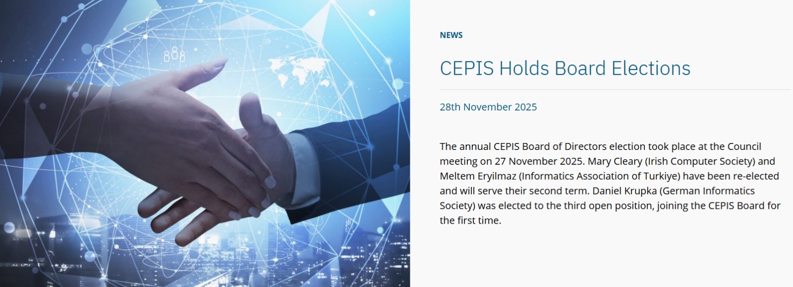- Doç. Dr. Meltem Eryılmaz güçlü adayları geride bırakarak yeniden CEPIS Yönetim Kuruluna seçildi.